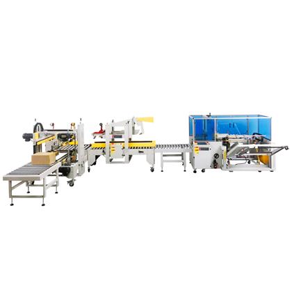 自動包裝流水線集自動開箱、自動折箱、自動封箱、自動打包等功能于一體,包含開箱機折蓋封箱機、四角邊封箱、全自動打包機等設備。應用范圍廣、占地面積小、操作簡單、性能穩定。可大大減少勞動力,提高生產效率,降低生產成本。為國內數家大型知名企業選用。同時還可根據客戶包裝需要的不同而進行個性化設計和制造。